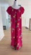 Vintage Hilo Hattie's maxi dress in bright pink with tropical flower print in yellow, blue and white. Short tulip style sleeves, wide neck and a tie at the front of the neckline. 100% polyester. Made in Hawaii.