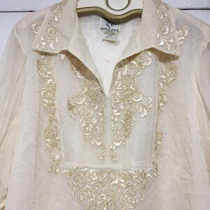 VINTAGE ILE EMBROIDERED EMBELLISHED SILK BLOUSES SIZE 2XL