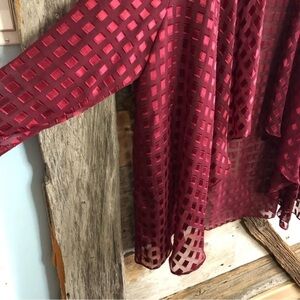 Burgundy semi-sheer velvet burnout cover up with shoulder pads