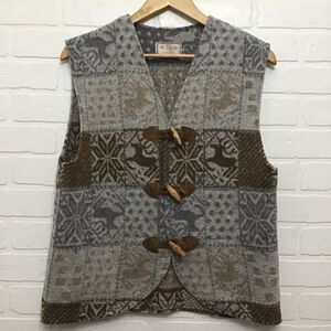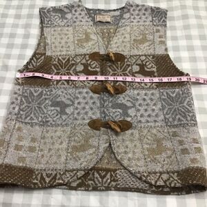 VINTAGE Imperial Connection wool blend vest deer grey beige ecru leather small