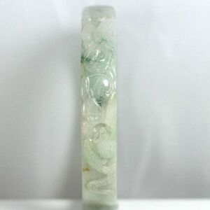 VINTAGE JADE GREEN WHITE GREY CARVED BAT FRUIT 12MM FLAT BANGLE BRACELET