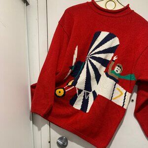J.G. Hook Casual Knit Sweater, Lightweight, Size M, Color Red, Multicolor Graphic, 100% Cotton, Turtleneck Pullover, Graphic Small Spots, in Good Condition, Relaxed Fit, Great Look, Great Fit.