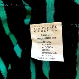 Jean Paul Gaultier (JPG Jeans) black and green stripped cotton tank top with logo print detail (left side).