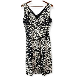 VINTAGE Jolibel Dots Midi Dress Black White Crossover V-neck Sleeveless Size 10