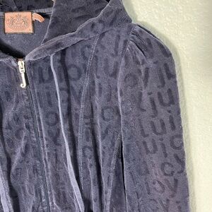 VINTAGE Juicy Couture 90s Y2K Velour Jacket Full Zip Juicy All Over Medium Blue