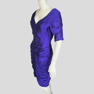 VINTAGE KANAK 100% SILK ROYAL PURPLE RUCHED DRESS (SZ 8)