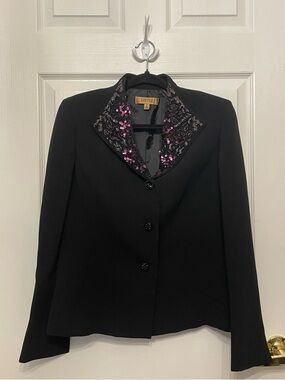 Shoulder pads in, chunky retro buttons( really great quality. Barely used.
