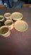 VINTAGE KILN KRAFT - 1970’s Ironstone Cups & Saucer Set - Tan/Orange - set of 5