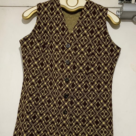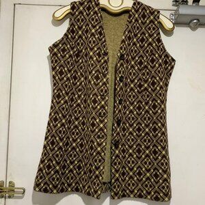 Kinson Casual Vest, No Fabric / Size Tag, Size S/M, Brown, Yellow Pattern, Lightweight, Closure Button Down, Good Condition, Tall Vest, Great Look, Great Fit.