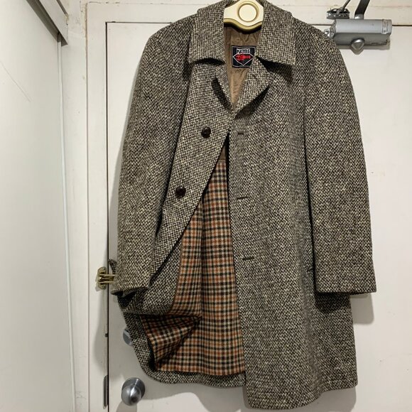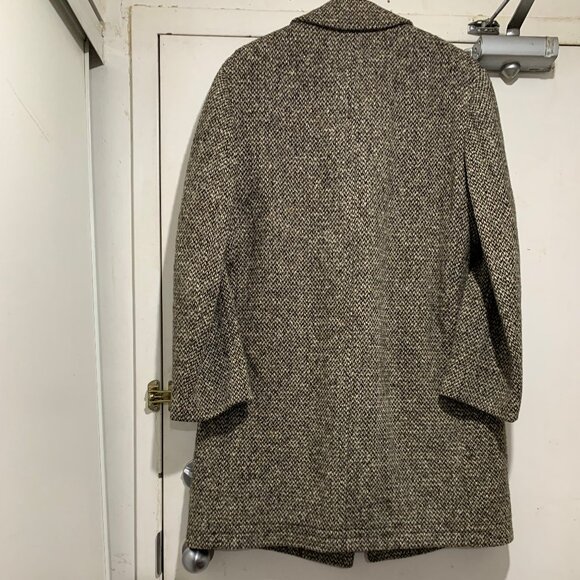 Krebs Men's Tweed Coat, Missing Size Tag, Fit Size M, Color Brown, Cream, 100% Wool, Lined, Side Pockets, Inside Pocket, Shoulder Pad, Closure Button Down, Good Condition, Formal Coat.Great Look, Great Fit.