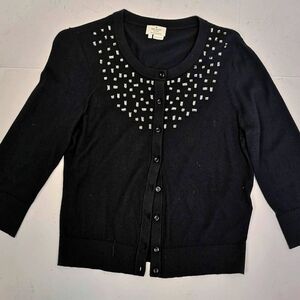 00s Kate Spade Preppy Rhinestone bib Black cashmere cotton sparkle long sleeve cardigan