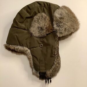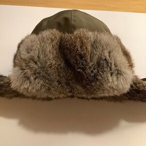 VINTAGE Khaki Genuine Fur Trapper Hat