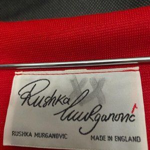 RUSHKA MURGANOVICH VINTAGE KNIT LONG JACKET/COAT/CARDIGAN.MADE IN ENGLAND ,100% WOOL, RED COLOR,TWO INSIDE POCKETS, LIGHT, ELEGANT. NO SIZE TAG ,IN MY OPINION IT'S XL