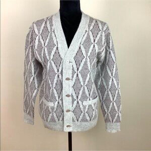 VINTAGE LAMBSWOOL UNIQUE GEOMETRIC DESIGN CARDIGAN