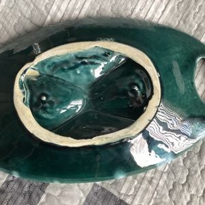 VINTAGE LARGE SIZE OVAL GLAZED POTTERY DIVIDED SERVING DISH WITH HANDLES