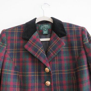 VINTAGE LAUREN RALPH LAUREN Plaid Velvet Collar 100% Wool Blazer Jacket - Women's Size US 10P