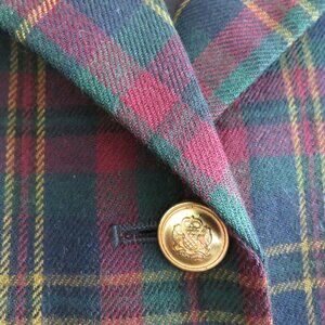 VINTAGE LAUREN RALPH LAUREN Plaid Velvet Collar 100% Wool Blazer Jacket Preppy