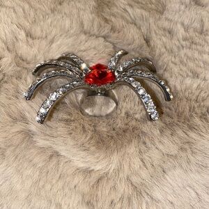 Super cute spooky sparkly spider tarantula ring rhinestone crystal red and white, band is adjustable and can be tightened or loosened. Perfect conversation piece cocktail ring for Halloween. Great for tons of costumes! Vampire, witch, devil etc. 10/10 condition and has all rhinestones.