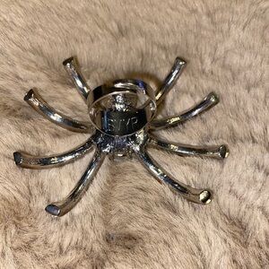Super cute spooky sparkly spider tarantula ring rhinestone crystal red and white, band is adjustable and can be tightened or loosened. Perfect conversation piece cocktail ring for Halloween. Great for tons of costumes! Vampire, witch, devil etc. 10/10 condition and has all rhinestones.