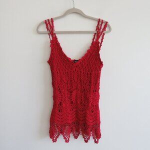 VINTAGE LE CHATEAU Y2K Crochet Beaded Babydoll Top in Cherry Red - Women's Size XL