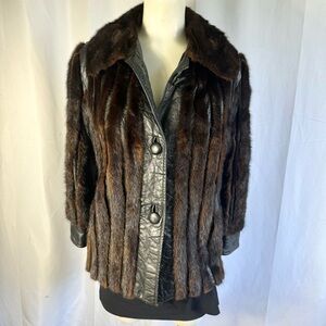 VINTAGE LEATHER JACKET OLD MONEY WINTER COAT LEATHER COAT WITH FUR TRIM SMALL