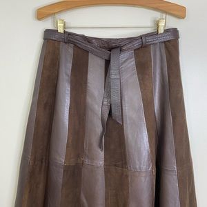VINTAGE LEATHER SUEDE STRIPED ALINE SKIRT WITH MATCHING LEATHER TIE, ZIGZAG HEM