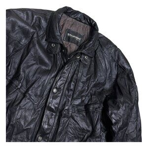 VINTAGE LEATHER Stratojac 90s Retro Genuine Leather Trench Coat Jacket Mens XL
