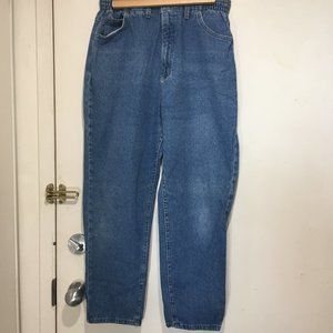 Vintage Lee High Rise Denim Jeans, Grunge Denim Tapered Size 14P, Color Blue Wash, 100% Cotton, Side Pockets, Stripe on the inside of Waistband, Elastic Waist Sides, Closure Zipper, and Button, in Good Condition, High Rise Mom Jeans, Great Look, Great Fitt.