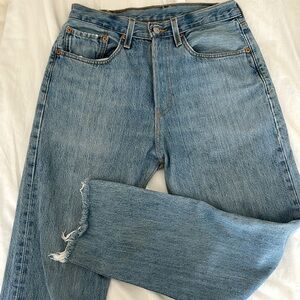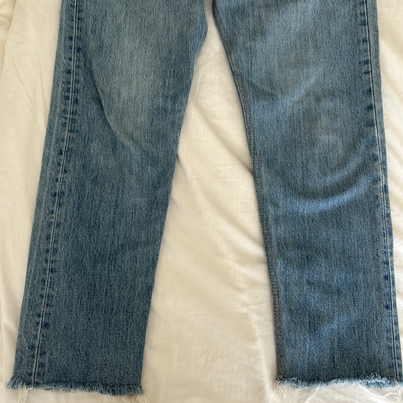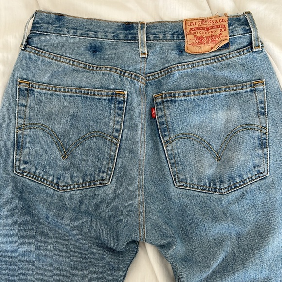 Vintage Levi’s, high waisted, material is form firm, real nice light denim wash with no rips or tears, boyfriend style jean not skinny/fitted but no wideleg