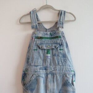 VINTAGE LIBERTY Cargo Carpenter Denim Overalls Acid Wash Hand Embroidered Workwear - Size M