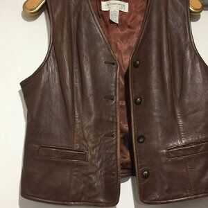 Liz Claiborne Collection Casual Leather Vest, Lightweight Size 6, Color Brown, 100% Leather, Lined, Front Pocket, Closure Button Down, Good Condition, Relaxed Fit, Great Look, Great Fit.
