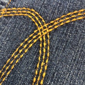 3104 VINTAGE STONEWASHED HEAVYWEIGHT DENIM 99% COTTON !! CLASSIC CUT STRAIGHT STYLE !! DECORATIVE EMBROIDERY ON BACK POCKETS !! NOT ALTERED !! 10” HIGH-RISE!! VINTAGE QUALITY DENIM and COOL DESIGNER style 😎 quality quality quality