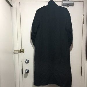 Vintage Logistik Trench Coat, No Label Fit Medium, Color Black, 100% Wool, Removable Lining, Side Pockets, Shoulder Pads, and Flaps, Back Split, Closure Buttons, in Good Condition, Made in Canada, Warm Heavy Coat, Great Look, Great Fitting.