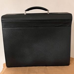 Vintage and never used, from 2004 LOUIS VUITTON TAÏGA LEATHER COLLECTION, in black with matte silver Palladium hardware, reinforced top handle and flap that closes with the press of a lock, opens to smooth partitioned leather interior with three compartments, and patch pockets, extremely rare to find this model in such exceptional condition, also they no longer produce this model, Made in France 🇫🇷, sorry no dustbag, Height is 13”, Depth is 5.25”, Length is 16.25”. The only other one I could find is a dark grey one on 1st Dibs and they’re asking $3931.69. UNISEX