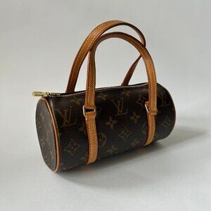 Vintage Louis Vuitton Monogram Papillon 19. The classic rounded shape with two straps is supposed to take the form and spirit of the butterfly (Papillon). It was originally designed by Henri Vuitton in 1966 and has become one of most endearing bags of Louis Vuitton's collection. The Papillon 19 is the tiny size of the Papillon family, perfect for holding just your essentials. Le Papillon 19 was discontinued by Louis Vuitton, making this bag more rare & iconic.