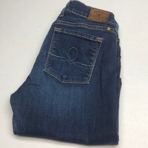 3109 ๐ LUCKY YOU ๐ on zipper !! DECORATIVE EMBROIDERY ON BACK POCKETS !! VINTAGE LEATHER PATCH !! CLASSIC 5-POCKET STYLE !! CONTRASTED DOUBLE STITCHING !! NOT ALTERED !! 8โ MIDRISE !! PREMIUM QUALITY LUCKY BRAND DENIM and CLASSIC fit and style ๐