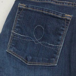 3109 ๐ LUCKY YOU ๐ on zipper !! DECORATIVE EMBROIDERY ON BACK POCKETS !!  VINTAGE LEATHER PATCH !! CLASSIC 5-POCKET STYLE !! CONTRASTED DOUBLE STITCHING !!  NOT ALTERED !! 8โ MIDRISE !! PREMIUM QUALITY LUCKY BRAND DENIM and CLASSIC fit and style ๐