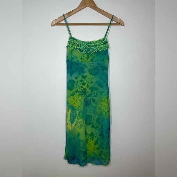 VINTAGE La Belle Lime Green Burnout Mini Dress Small