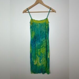 Vintage La Belle Lime Green Burnout Mini Dress Small