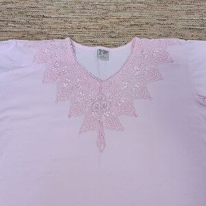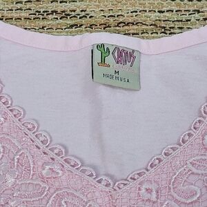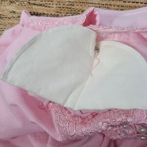 This cotton T-shirt has lace embellishments and shoulder pads for a totally vintage vibe!