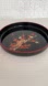 Vintage black lacquer ware round serving tray with cherry blossom design in red, cream and brown. Red rim on tray. Approximately 12" diameter, 1.5" high. Very good pre-loved condition. A few minor signs of wear. Please see photos and videos.