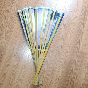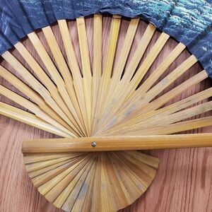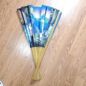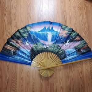 Vintage Large Fan 59x36 Handpainted Sky Scene Wal Art