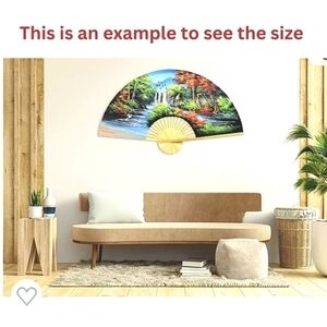 VINTAGE Large Fan 59x36 Handpainted Sky Scene Wal Art
