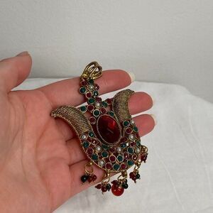 VINTAGE Large Gold & Ruby Dangly Necklace Pendant