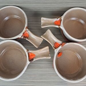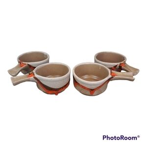 VINTAGE Laurentian pottery set of 4 soup bowl orange lava drip glaze # 643