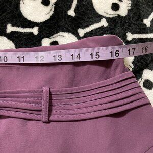 This gorgeous vintage purple skirt is fully lined (in a lighter shade of purple), does up with a nylon zipper, includes a chic multi-strand built-in decorative belt/sash on the front of the garment, and has a wonderful a-line meets (lower hem) tulip silhouette. ๐๐