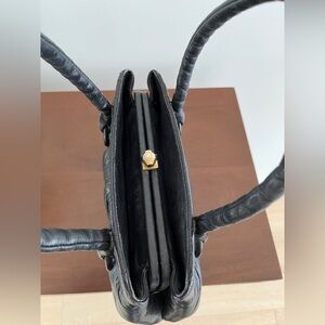 VINTAGE Leather Lady Handbag Frame Style Double Handle Neutral 60's 70's Chic