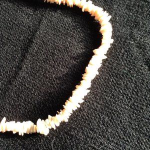 VINTAGE Light Pink Shell Necklace from the mid-1980s. The necklace has a brass screw closure. Very light pink in color.