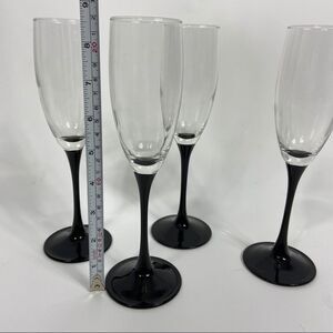 VINTAGE Luminarc France Champagne Wine Glass Flute Black Stem.