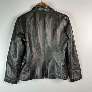 VINTAGE M. Julian Black Leather Jacket Pockets Lined Zipper Tailored Fit Small